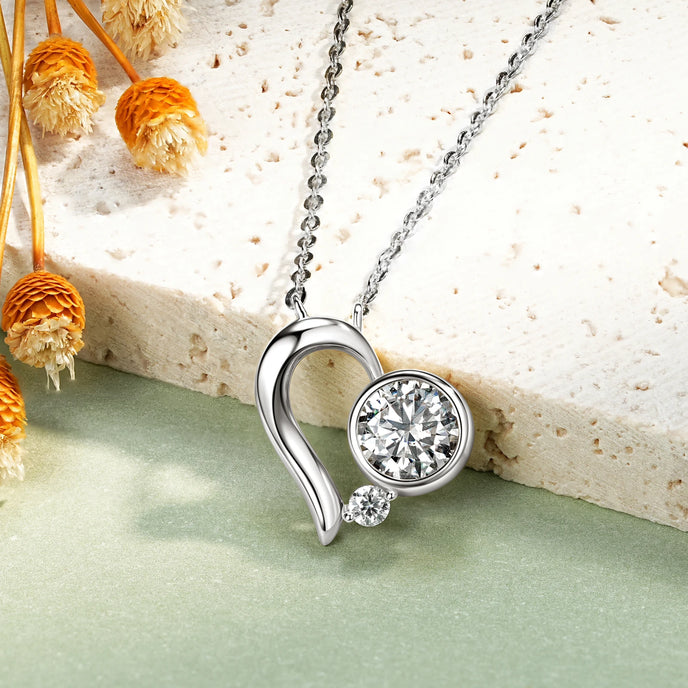 The Bubble Heart Necklace exudes charm with its delicate and romantic design. Featuring a stunning 6.5mm heart-shaped moissanite and a smaller 2.5mm accent stone, this piece totals just over 1 carat of brilliance. Adjustable from 18 to 20 inches, it’s available in white or yellow gold plating, making it a versatile and heartfelt addition to any jewelry collection.