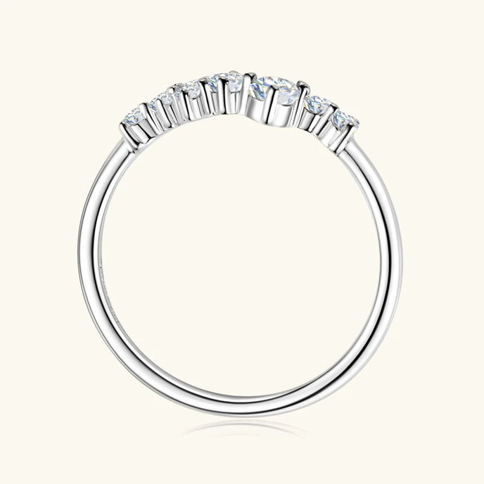 The Constellation Ring showcases nine sparkling moissanite stones, set in your choice of gold-plated or white gold-plated sterling silver. Available in sizes 4 to 10, this elegant piece adds a celestial touch to any outfit. Comes beautifully packaged with a GRA certificate.