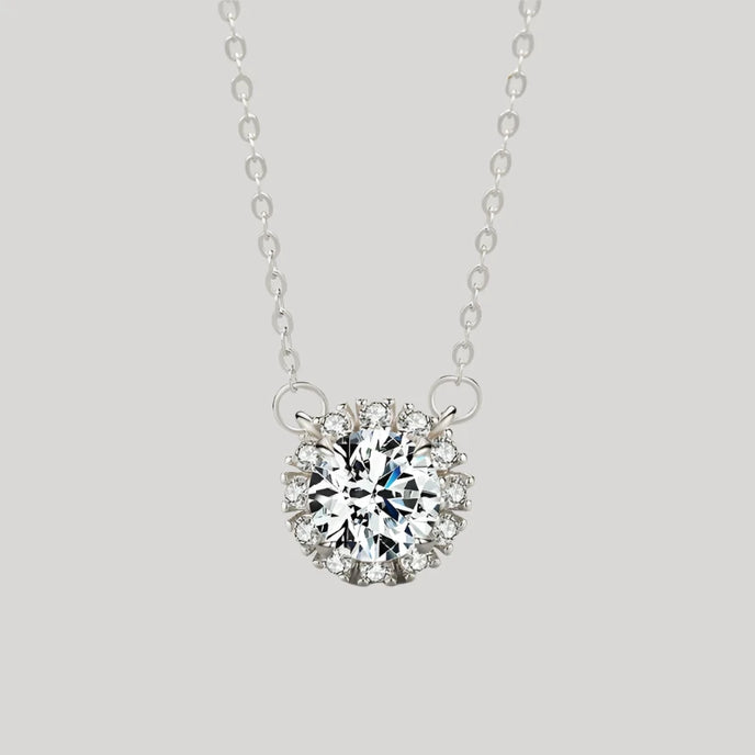 Our Grand Halo Necklace showcases an intricately designed centerpiece, adorned with a large cubic zirconia stone encircled by a halo of smaller sparkling stones, set to dazzle from every angle. Crafted from sterling silver and plated in your choice of gold or platinum, this necklace offers an opulent yet affordable way to make a statement. Adjustable between 18 and 20 inches, it’s designed for a versatile fit that pairs seamlessly with both elegant and everyday looks.