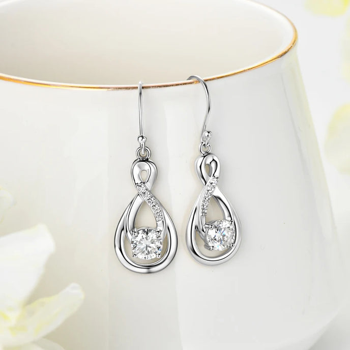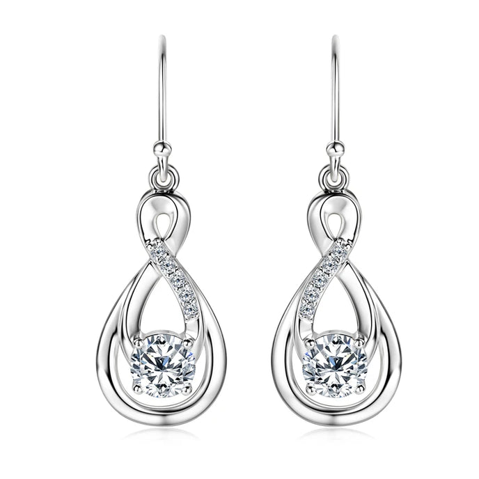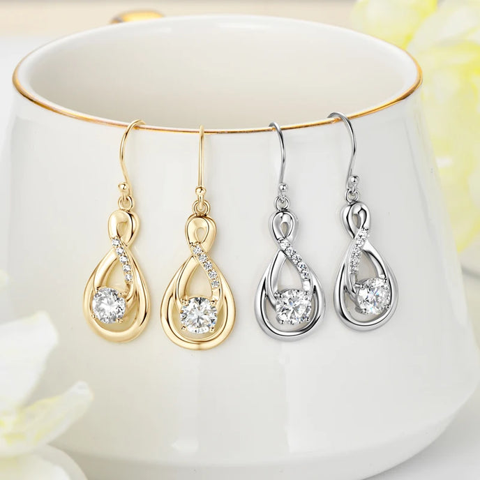 Elegant and minimalist, the Infinity Hook Earrings feature a sleek infinity design that effortlessly complements any look. Each piece is adorned with a dazzling 5.5mm stone for a touch of brilliance. Available in sterling silver with white gold or yellow gold plating, these earrings are a timeless addition to your collection.