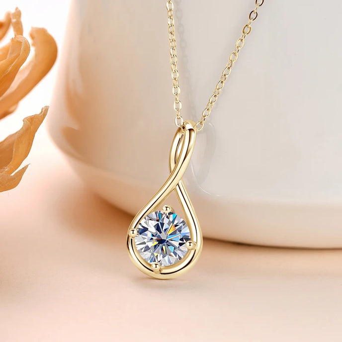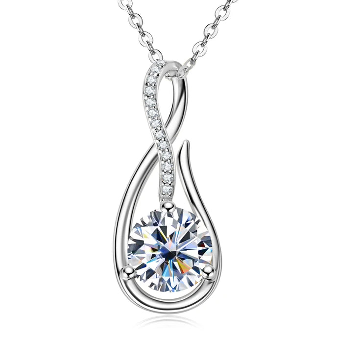 Refined and versatile, the Solitaire Hook Pendant Necklace features a brilliant 2ct moissanite centerpiece, surrounded by 13 delicate 1mm stones for a radiant finish. Choose from two elegant styles: a pavé-accented hook or a minimalist infinity design. Available in white or yellow gold plating, this necklace is adjustable from 18 to 20 inches for the perfect fit.